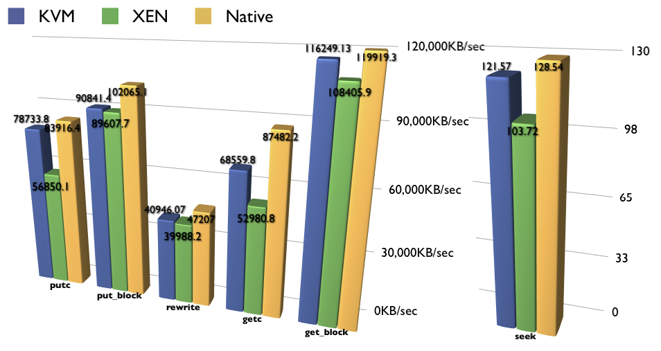 - For KVM, there is a 5-10% penalty on both read and write.